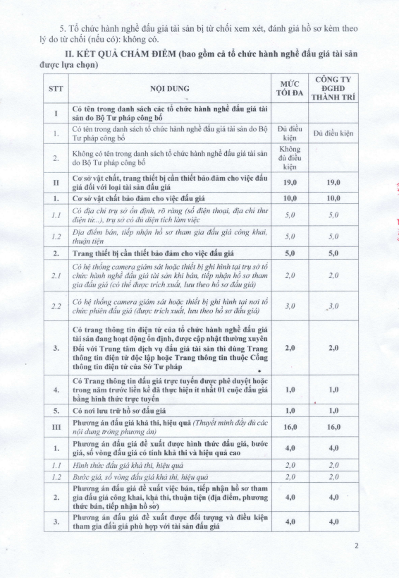 Thông báo kết quả lựa chọn tổ chức đấu giá tài sản