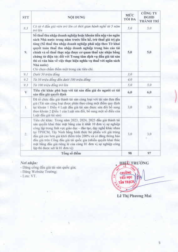 đã chính thức ban hành Thông báo số 98/TB-THTTr về kết quả lựa chọn tổ chức đấu giá tài sản cho quyền khai thác tài sản công tại trường.